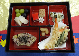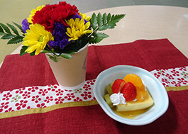 毎月1日は赤飯と天ぷら盛り合わせを提供しています。冬期期間(10月~5月まで)は市場で仕入れた新鮮なお刺身も提供しています。 入所では月に一度、セレクトおやつの実施、通所では手作りおやつを提供しており、ご利用者様に楽しんで頂けるよう日々、工夫して取り組んでいます。